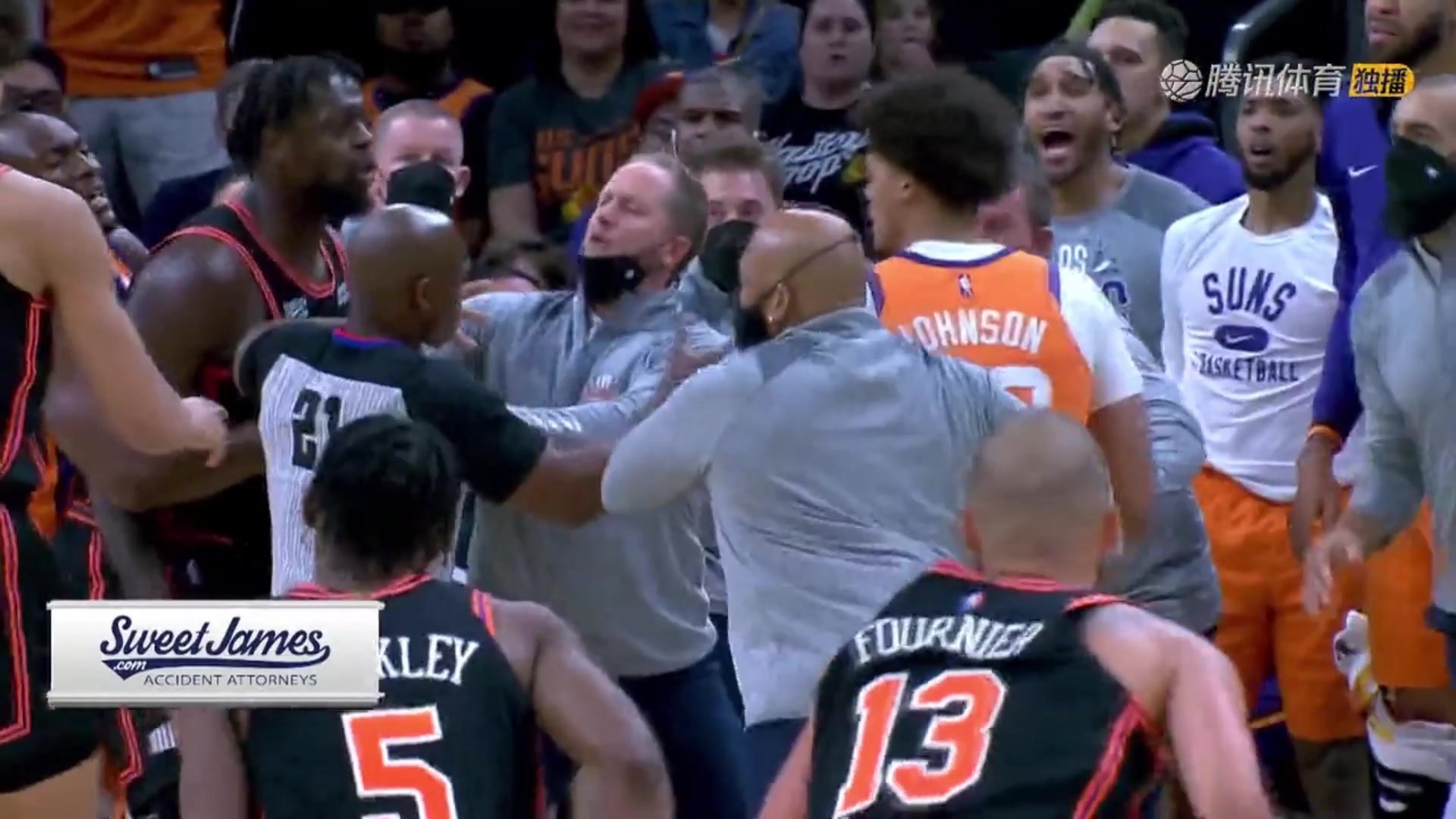 火气真大!兰德尔与约翰逊互喷垃圾话 前者主动推搡 遭驱逐出场